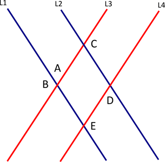 Diketahui garis $L_1$ sejajar dengan $L_2,$ sedangkan $L_3$ sejajar dengan $L_4.$ Jika besar sudut $A$ adalah $50^\circ,$ berilah tanda centang $(\checkmark)$ pada pernyataan yang bernilai benar terkait besar sudut yang lain. Jawaban benar mungkin lebih dari satu.